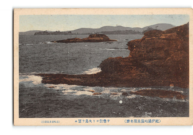 和歌山 手彩色 紀伊湯崎温泉場名勝 千畳敷より大島を望む *傷み有り