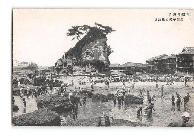 茨城 常陸河原子 烏帽子岩と旅館街 *傷み有り