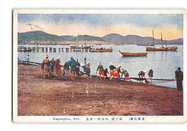 千葉 安房名勝 鏡ヶ浦 地曳漁の光景 実逓便エンタイア *傷み有り
