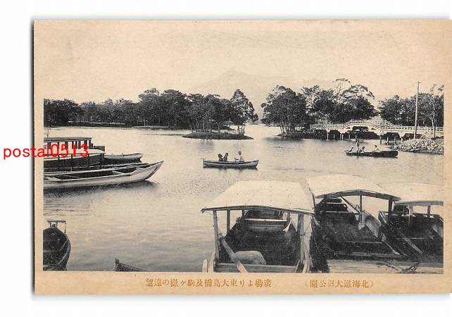 北海道 大沼公園 広場より東大島橋及駒ヶ嶽の遠望 *アルバム跡有り