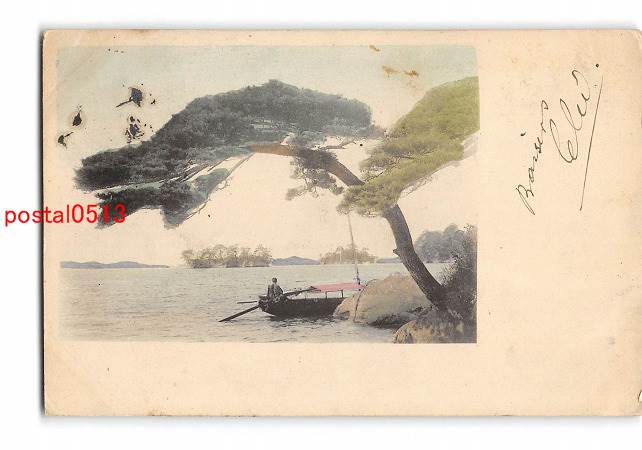 場所不明 海辺の松 手彩色 実逓便エンタイア *傷み有り