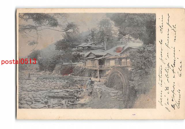 場所不明 水車 旅館? 手彩色 実逓便エンタイア *傷み有り