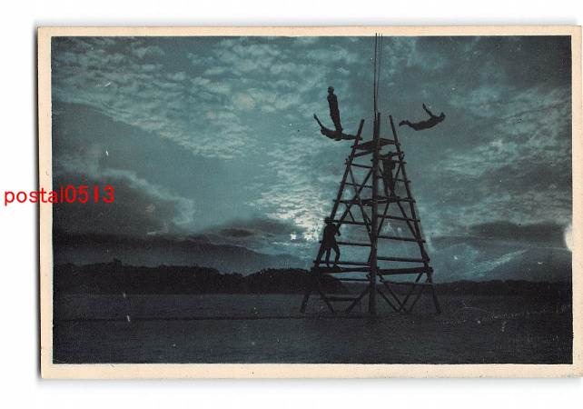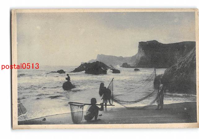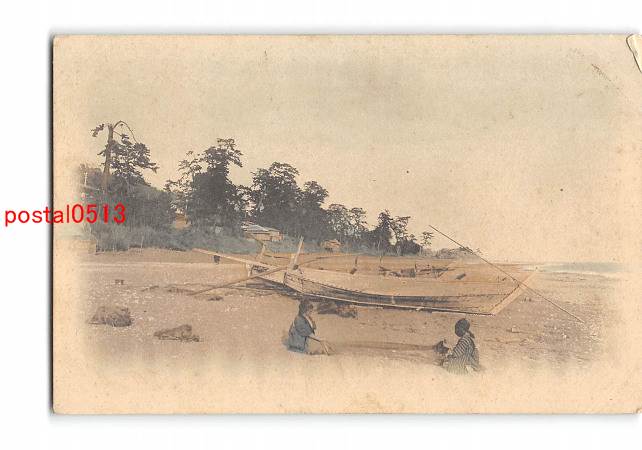 海辺 網干し? 手彩色 *剥離有り