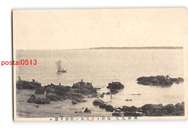 静岡 興津風光 海岸より三保の松原を望む
