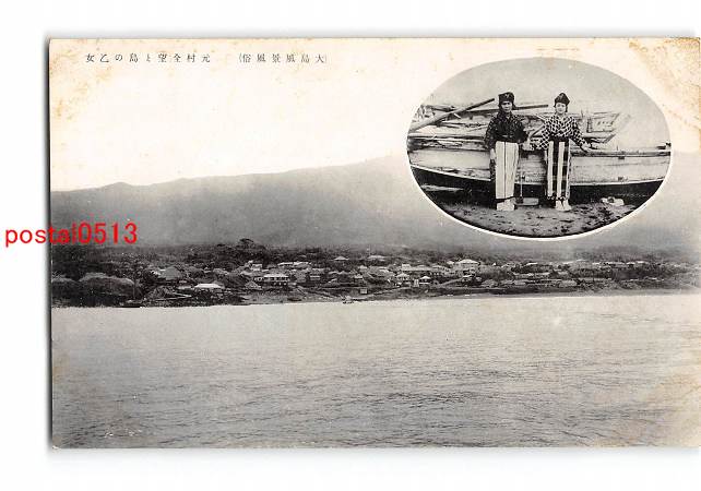 東京 大島風景風俗 元村全望と島の乙女 *傷み有り