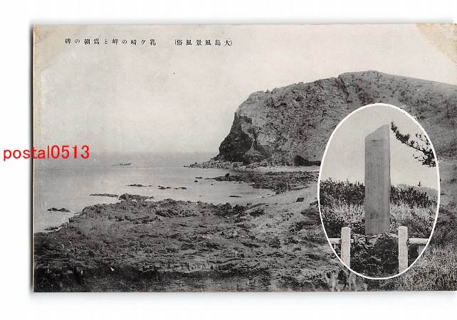 東京 大島風景風俗 乳ヶ崎の岬と為朝の碑 *アルバム跡有り