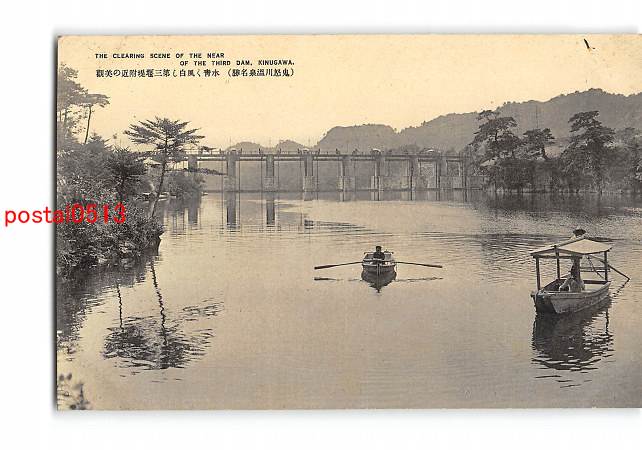 栃木 鬼怒川温泉名勝 水青く風白し第三堰堤付近の美観 *アルバム跡有り