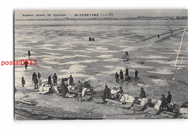満州 ハルビン 氷結せる松花江上の橇 *傷み有り