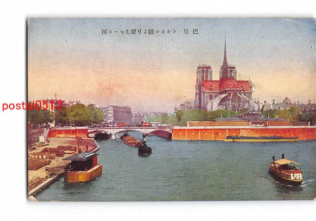 フランス 巴里 トンネル橋より望むセーヌ河 *折れ有り