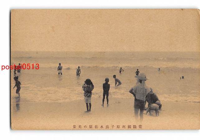 茨城 常陸国河原子海水浴場の光景 *折れ有り