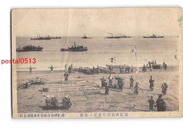 新潟 直江津海岸荷揚場の全景 直江津海岸眺洋艦多通屋旅館 *傷み有り