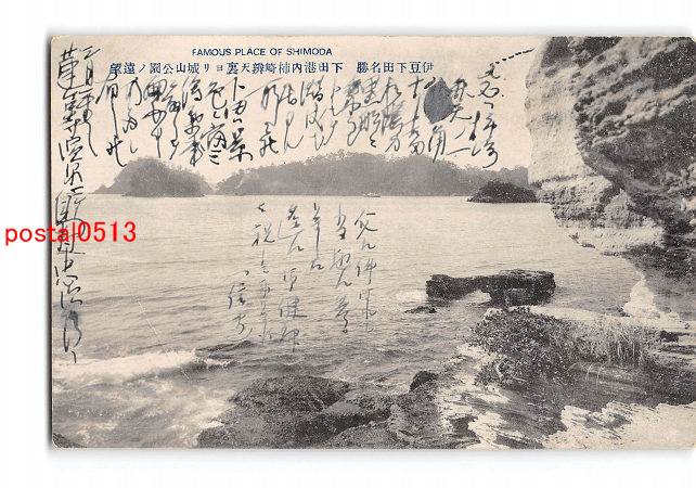 静岡 伊豆下田名勝 下田港内柿崎弁天裏より城山公園の遠望 実逓便エンタイア *折れ有り