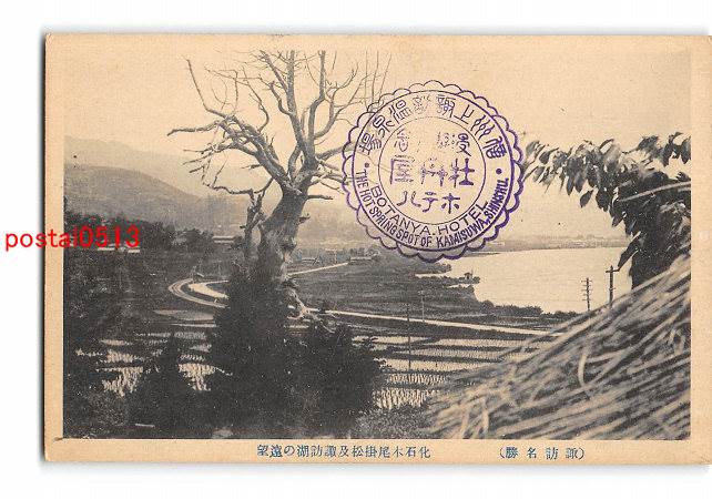 長野 諏訪名勝 化石木尾掛松及諏訪湖の遠望