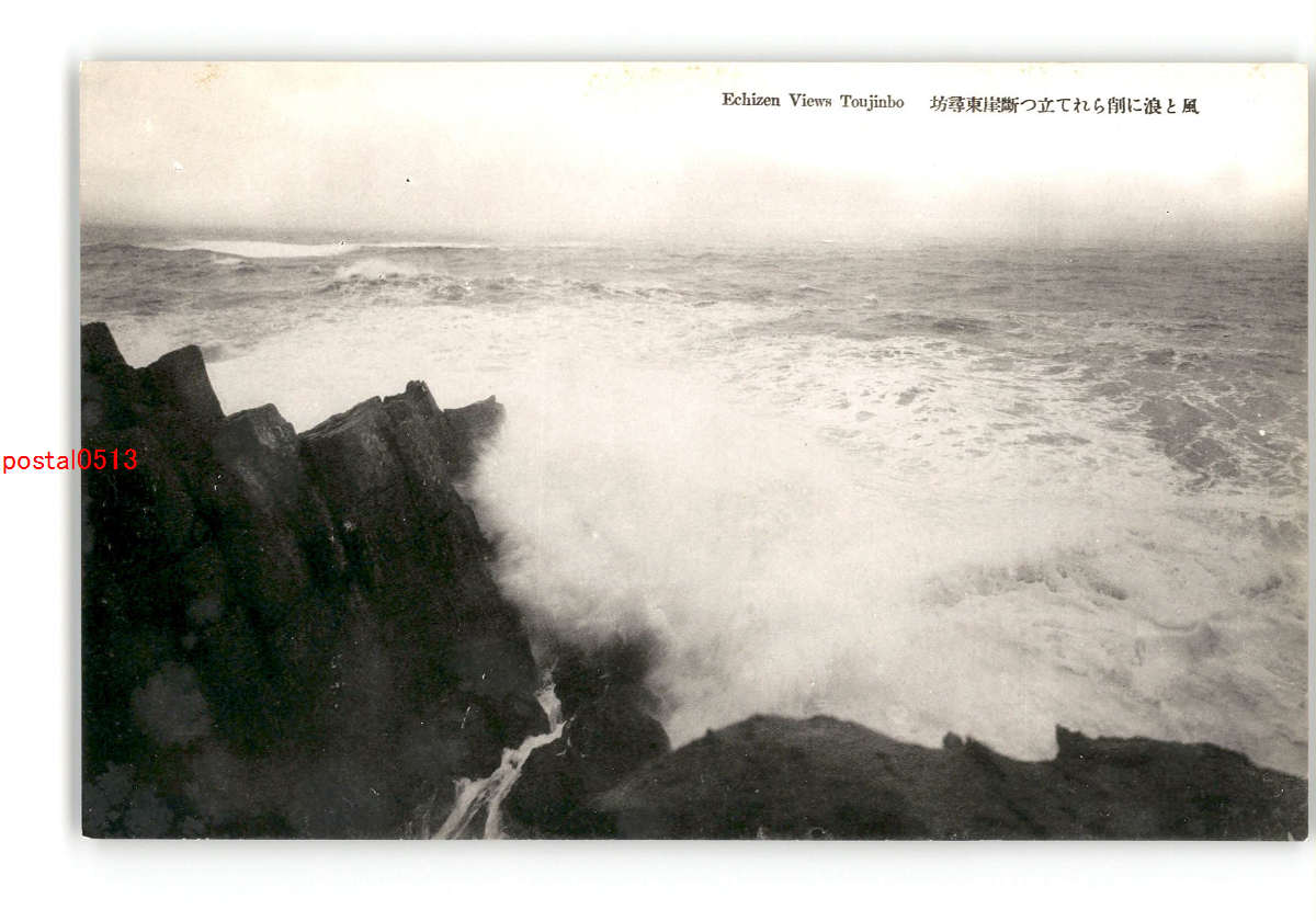福井 風と浪に削れらて立つ断崖東尋坊 *傷み有り