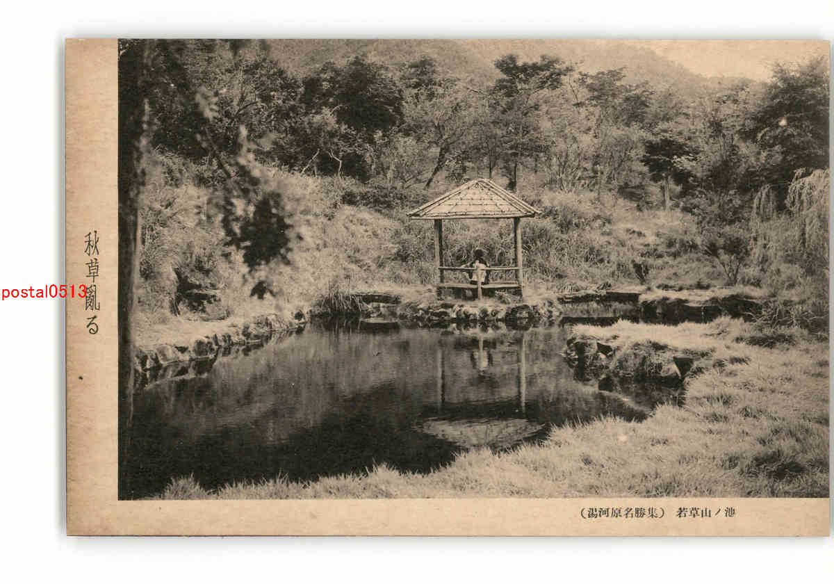 神奈川 秋草乱る 湯河原名勝集 若草山の池 *傷み有り