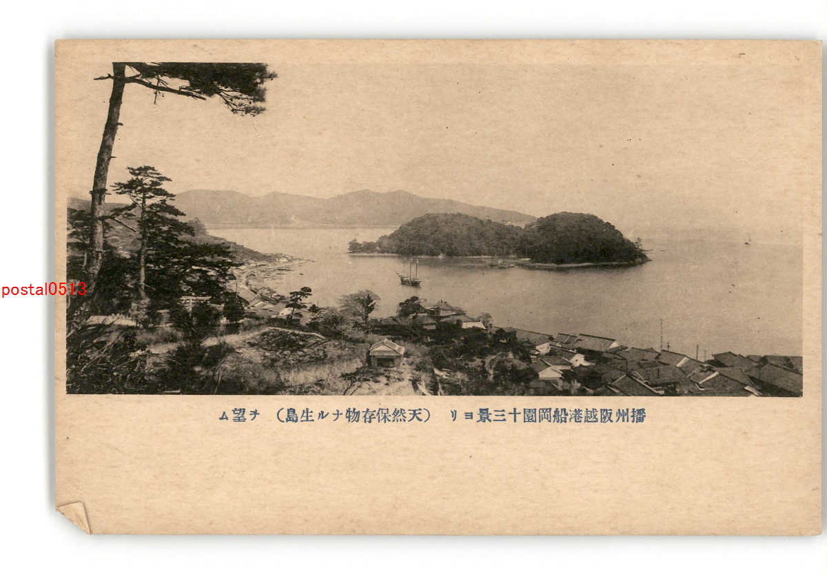 兵庫 播州阪越港船岡園十三景より 天然保存物なる生島を望む *傷み有り