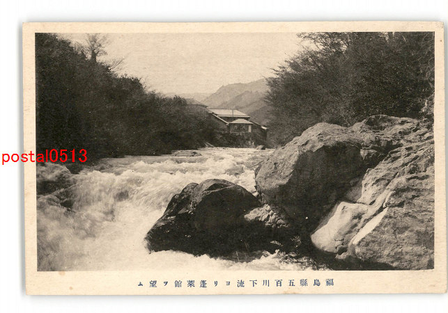 福島 五百川下流より蓬莱館を望む *傷み有り