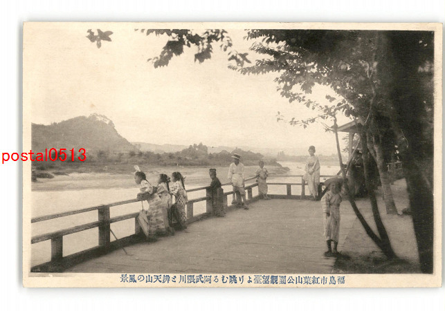 福島 福島市紅葉山公園観望台より眺むる阿武隈川と弁天山の風景 *傷み有り