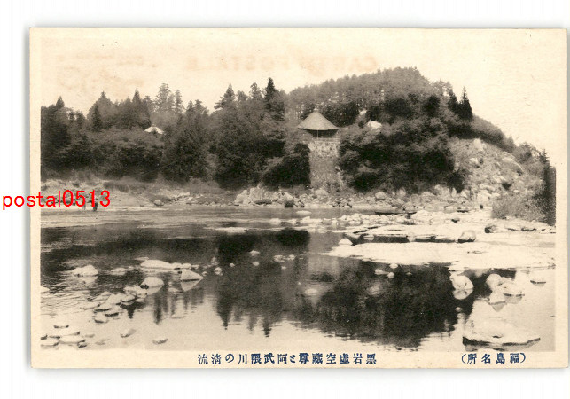 福島 福島名所 黒岩虚空藏尊と阿武隈川の清流 *傷み有り