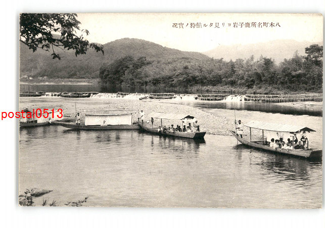 八木町名所鹿子岩より見たる鮎狩の実況 *傷み有り