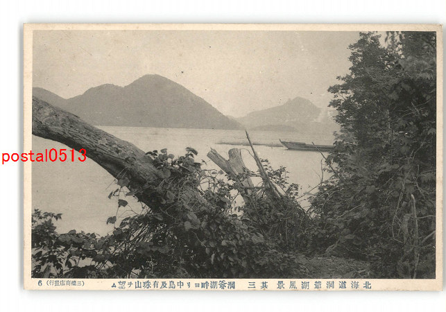 北海道 洞爺湖風景 その1 三樹亭庭前より中島を望む *傷み有り