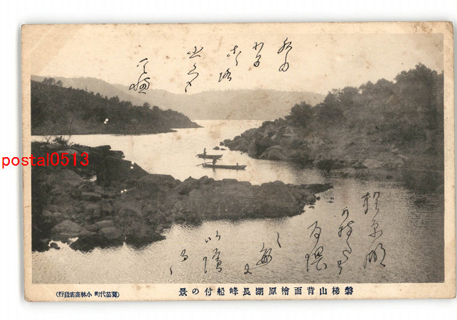 福島 磐梯山背面檜原湖長峰船付の景 *傷み有り