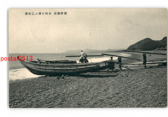 和歌山 熊野情景 木材を運ぶ乙女達 *傷み有り