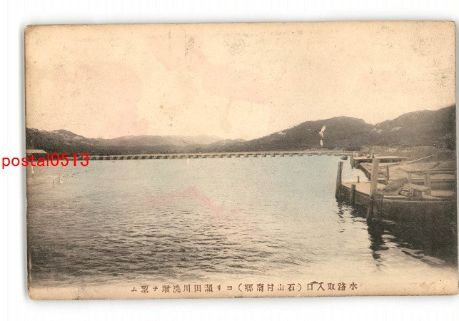 滋賀 手彩色 水路取入口 石山村南郷 より瀬田川洗堰を望む *傷み有り