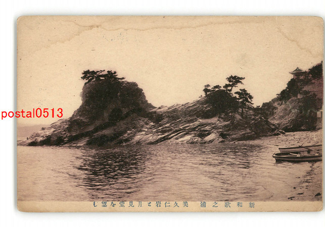 和歌山 新和歌之浦 美久仁岩と月見堂を望む *傷み有り