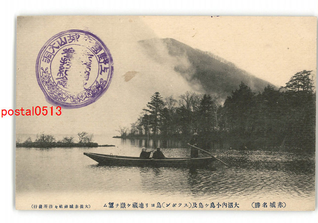 群馬 赤城名勝 大沼内小鳥ヶ島及スッポン島より地蔵ヶ嶽を望む *傷み有り