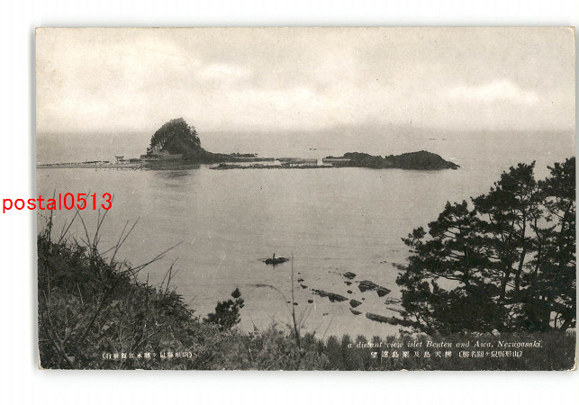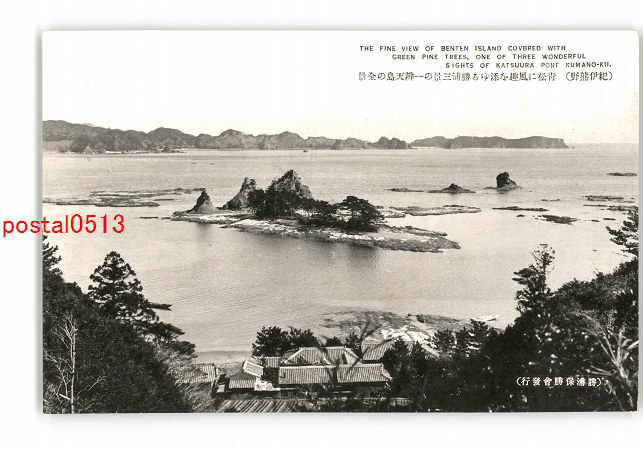 和歌山 紀伊熊野 青松に風趣を添ゆる勝浦三景の一弁天島の全景 *傷み有り