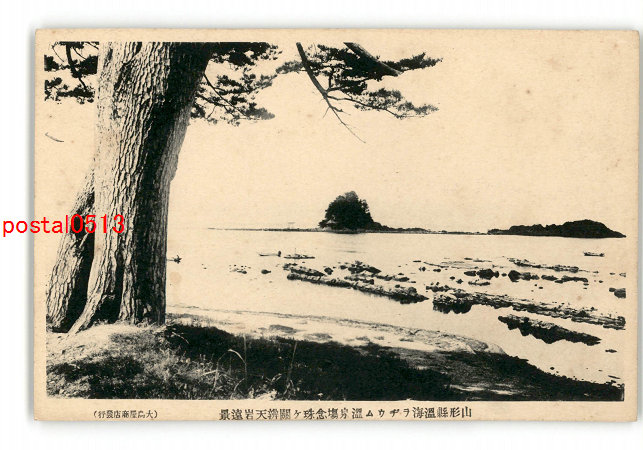 山形 温海ラヂウム温泉場念珠ヶ関弁天岩遠景 *傷み有り