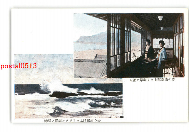 妙の浦館階上より海岸を望む 妙の浦館階上より見たる海岸の怒涛 *傷み有り