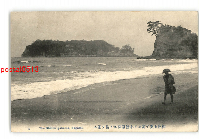 神奈川 相州七里ヶ浜より小動岩及江の島を望む *傷み有り