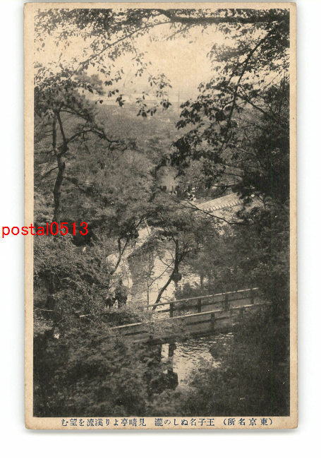 東京 東京名所 王子名ぬしの瀧 見晴亭より渓流を望む *傷み有り