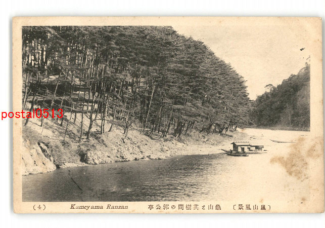 京都 嵐山風景 亀山とその樹間の郭公亭 *傷み有り