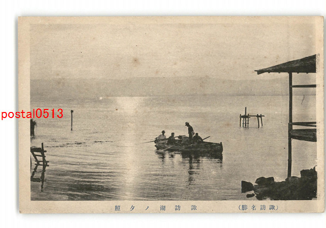 長野 諏訪名勝 諏訪湖の夕照 *傷み有り