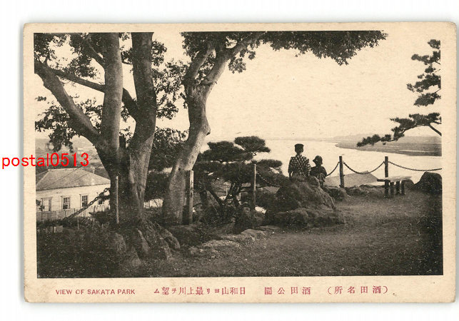 山形 酒田名所 酒田公園 日和山より最上川を望む *傷み有り
