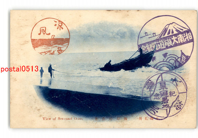 神奈川 大磯名所 海岸の漁舟 *傷み有り