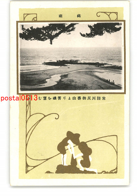 茨城 満潮 常陸川尻御番山より筈磯を望む *傷み有り