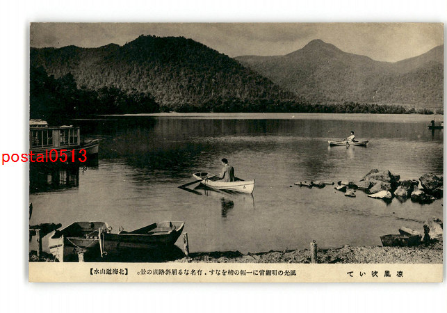 北海道 清風流れて 変化の美に富み 四季の眺め飽くを知らぬ 阿寒湖の絶勝 *傷み有り