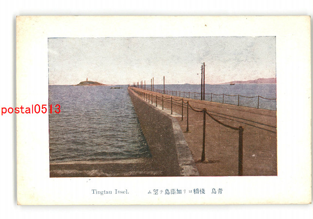 満州 青島 桟橋より加藤島 *傷み有り