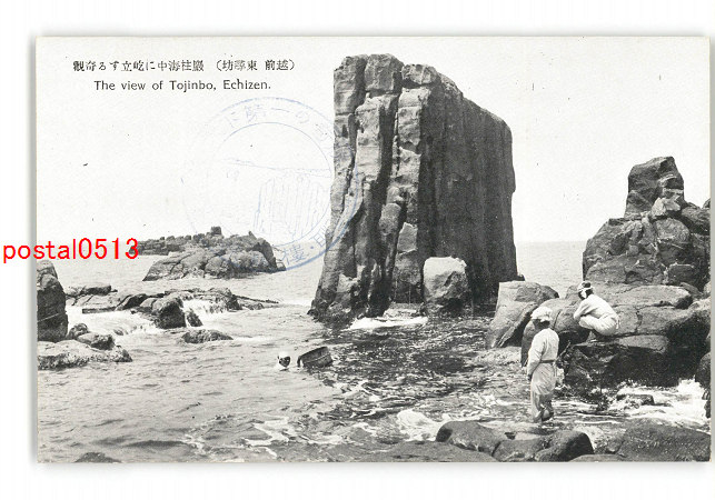 福井 深海に臨み巨岩の削立奇岩の点在せる東尋坊の一部 *傷み有り