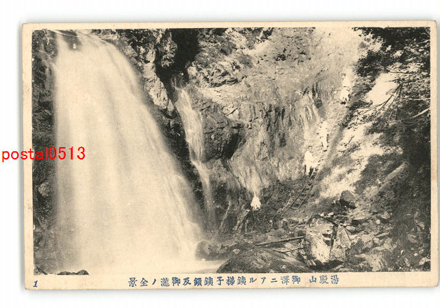 山形 湯殿山 御澤にある銕梯子銕鎖及御滝の全景 *傷み有り