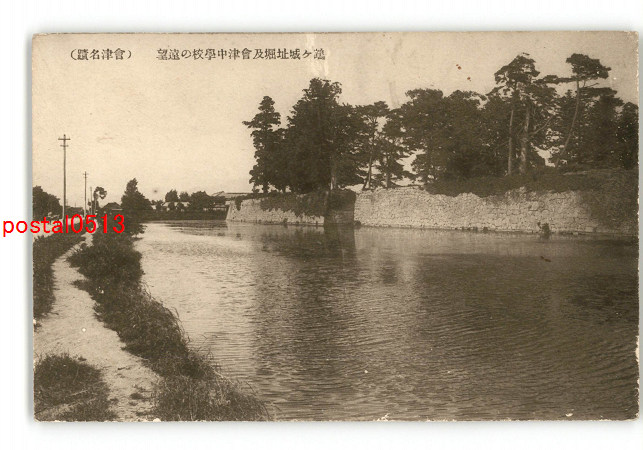 福島 鶴ヶ城址堀及会津中学校の遠望 会津名蹟 *傷み有り