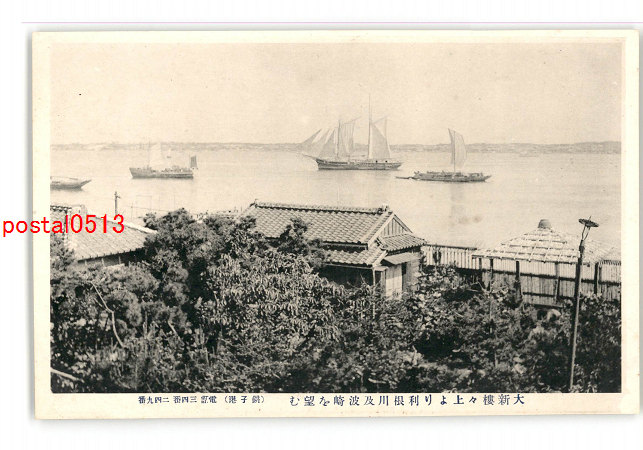 千葉 大新楼々上より利根川及波崎を望む 銚子港 *傷み有り
