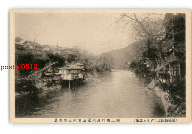 福島 飯坂ラヂウム温泉 摺上川畔波来湯及その附近の光景 *傷み有り