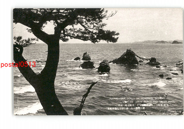 三重 二見浦名所 風々と■上を吹く潮風涼風 波間に躍る黄金白金 絵のやうな海岸風景 *傷み有り