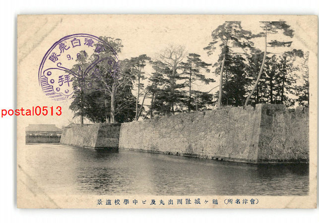 福島 会津名所 鶴ヶ城址西出丸及び中学校遠景 *傷み有り