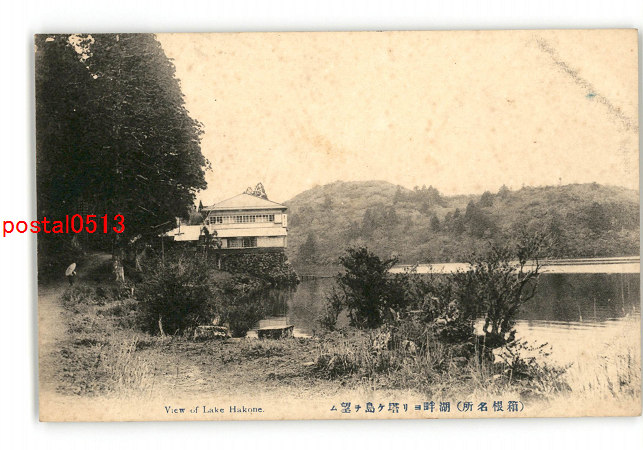 神奈川 箱根名所 湖畔より塔ヶ島を望む *傷み有り